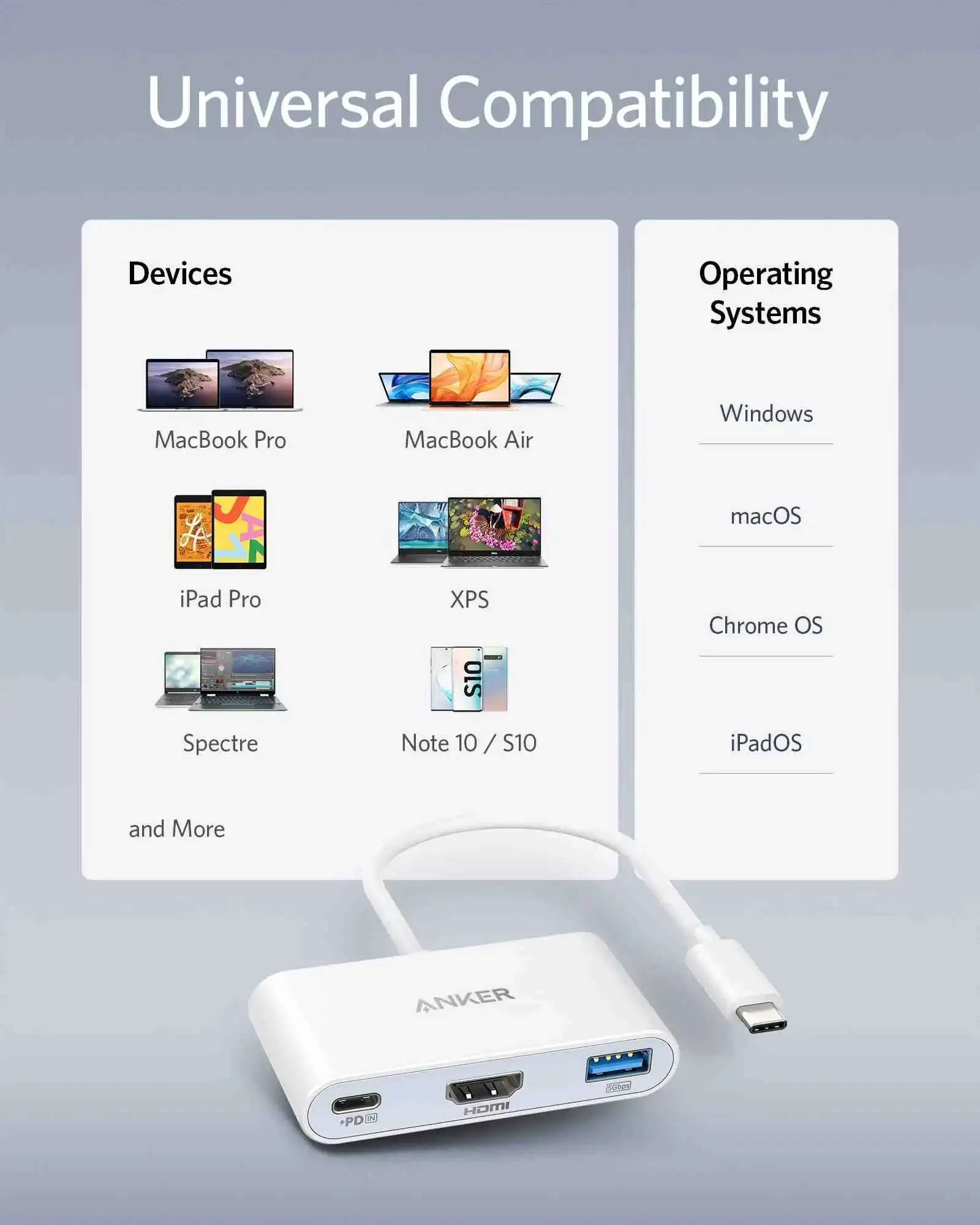 Compatible with MacBook Pro, iPad Pro, MacBook Air , Dell XPS 13/15, ThinkPad X1, Lenovo Yoga 17, HP Spectre x360, Microsoft Surface Pro 7, and Google Pixelbook, the PowerExpand 3-in-1 USB-C PD Hub is a versatile accessory that works with a wide range of devices.