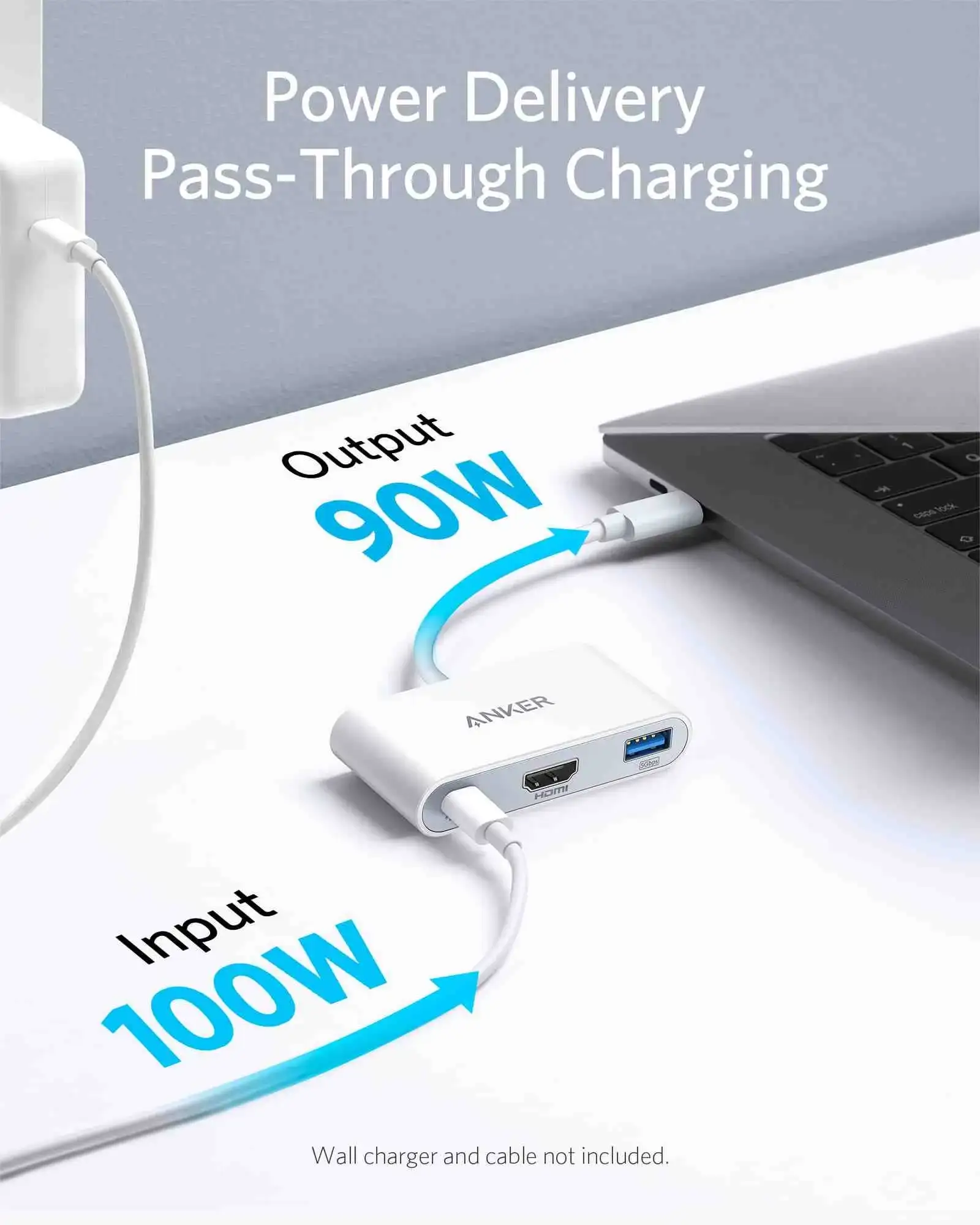 Please note that the USB-A data port does not support charging, and the charger and cable are not included with the hub. However, you can easily find compatible USB-C chargers and cables to use with the hub.